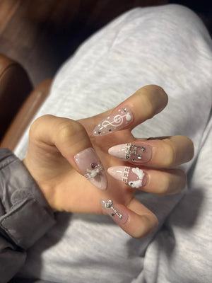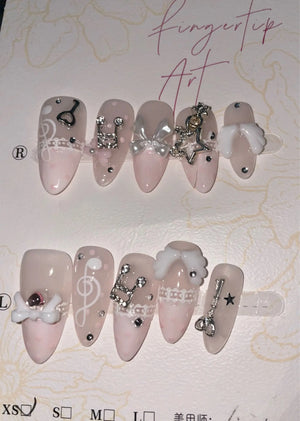 Apply vintage pink polka dots and musical note accents at home. Save hours and money while getting a consistent, eye-catching manicure before nights out or performances.