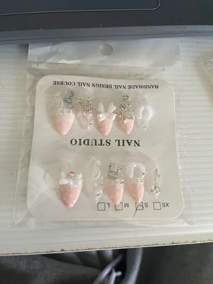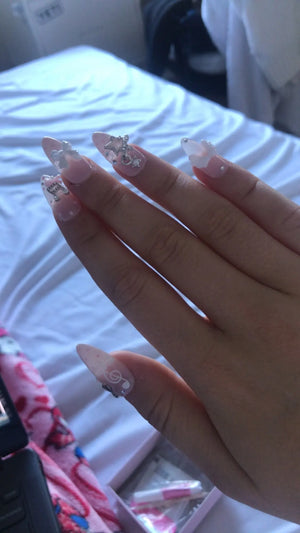 Unlike others, these press-on nails combine handmade French almond style, vintage pink patterns, and durable ABS material for confident, long-lasting looks without salon cost.